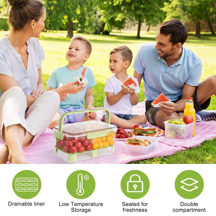 Sealing Buckle:In response to customer demand, we have upgraded the lid of the storage box to ensure that each lid can be closed better. The berry container of the refrigerator set is set with a buckle seal around it to form a sealed barrier, easy to open the lid, dust-proof and hygienic, ensuring that the food remains fresh and eliminating all worries about spills or food odors escaping.